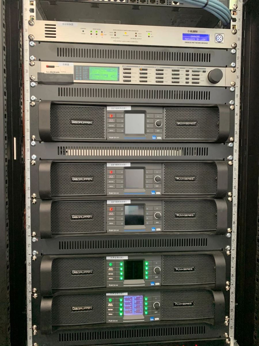 为了让系统扬声器能够有更好地发挥,茄子视频在线人员搭配LAB.EV的PLM 5K44、PLM 12K44PLM 20K44作为该音频系统的功放。PLM+系列集合了顶级的Lake处理功能和Dante数字音频网络功能,拥有充足的音频输入口和监控现场音频设备的功能,可以让系统更好的运作,在减低损耗的同时还可以进行操作和监控。